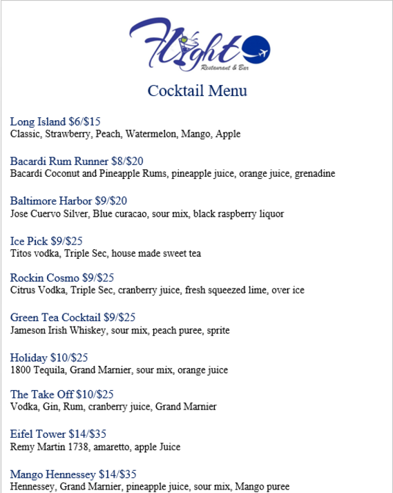 Menus The Admiral In Washington Dc